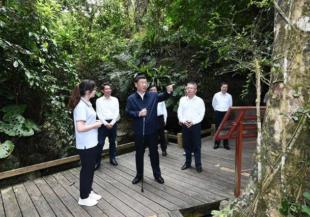 11日下午,習(xí)近平總書記到海南島中南部的五指山市考察調(diào)研。海南熱帶雨林國(guó)家公園是我國(guó)首批5個(gè)國(guó)家公園之一。習(xí)近平總書記深入五指山片區(qū),沿木棧道步行察看公園生態(tài)環(huán)境,不時(shí)停下腳步,詢問樹木生長(zhǎng)、水源涵養(yǎng)、動(dòng)植物資源保護(hù)等情況。