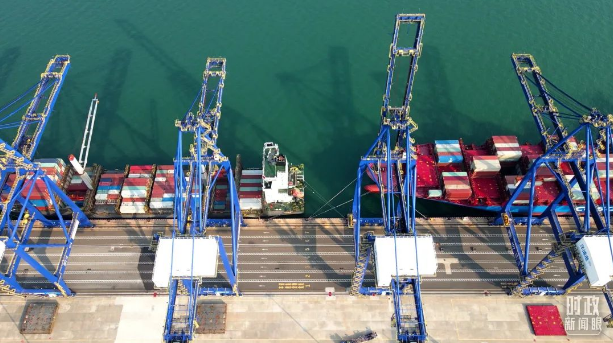 洋浦國(guó)際集裝箱碼頭小鏟灘港區(qū)。總臺(tái)記者葉飛拍攝