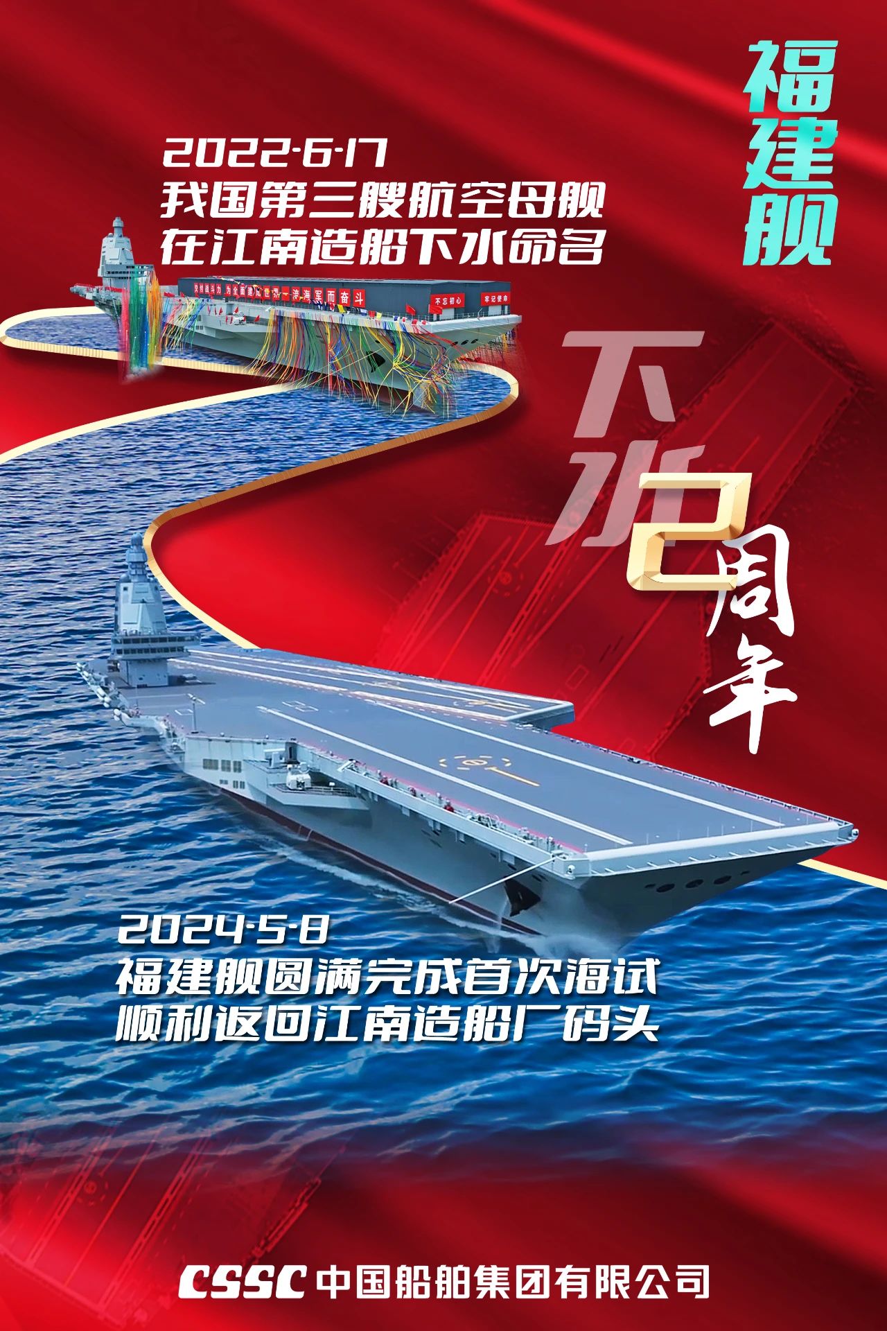 兩年前的今天,我國完全自主設計建造的首艘彈射型航空母艦——福建艦,在中國船舶集團有限公司江南造船廠下水。