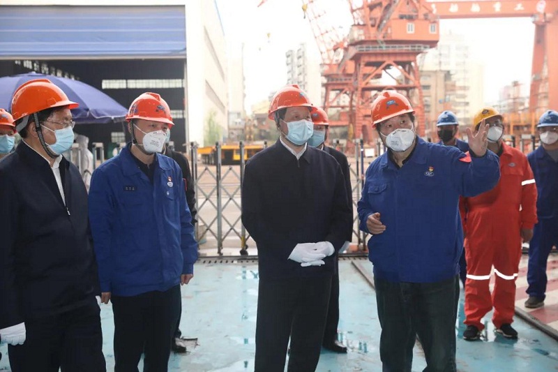 ????3月25日,湖北省委書記應(yīng)勇到中國(guó)船舶集團(tuán)有限公司所屬武船集團(tuán)調(diào)研復(fù)工復(fù)產(chǎn)、加快發(fā)展情況。省委常委、武漢市委書記王忠林,副省長(zhǎng)曹廣晶及省委、省政府有關(guān)部門負(fù)責(zé)同志參加調(diào)研。