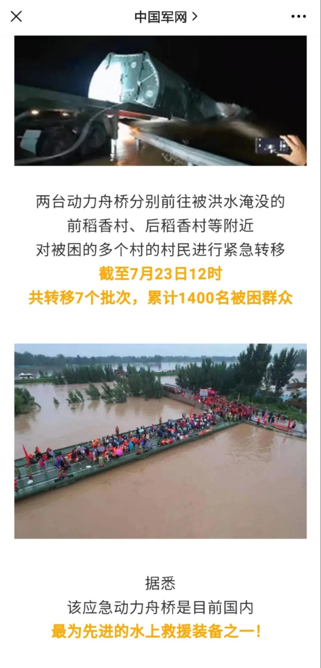 在這次執行河南抗洪搶險任務之前,動力舟橋曾參與過安徽池州潰口封堵、松花江特大洪水、鄱陽湖洪澇等多次災害救援,可以說是戰功累累。