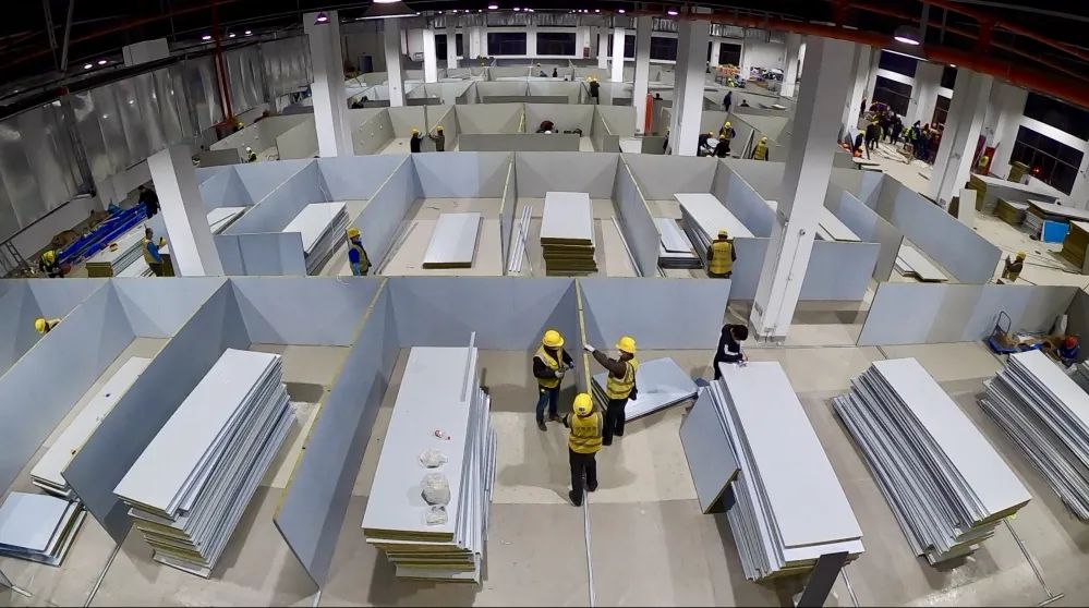長興島疫情突發,醫療資源嚴重匱乏,上海市和崇明區政府緊急啟動應急措施,盡快建起集中隔離治療場所成了當務之急。長興島防疫抗疫工程建設項目分三期,包括3個集中收治點和1個隔離觀察點,總施工面積超10萬平方米,需在10天內建成。