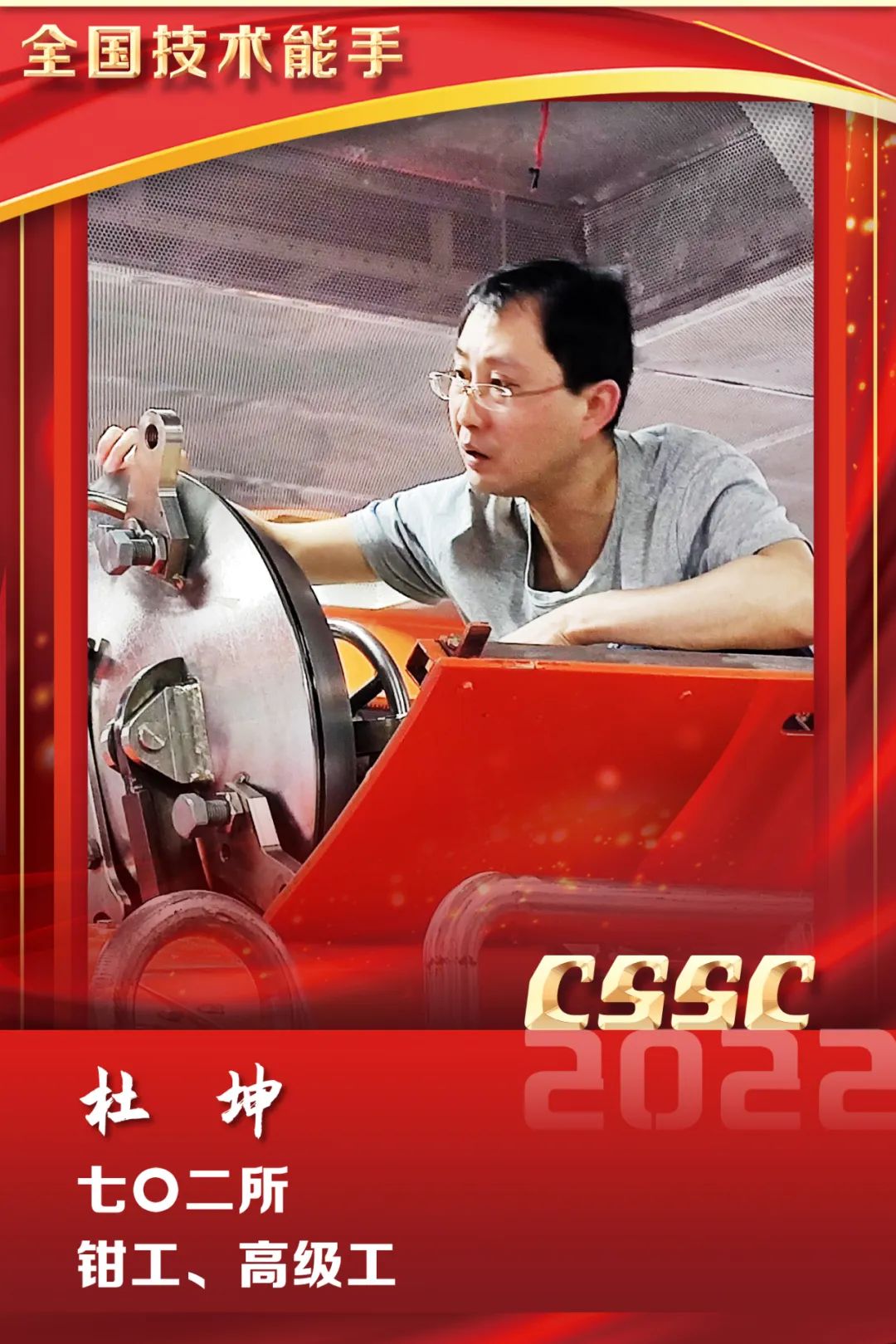 2022年12月,人力資源社會保障部發布《關于表彰第十六屆中華技能大獎和全國技術能手的決定》和《關于表揚國家技能人才培育工作突出貢獻單位和個人的通知》,中國船舶集團7個人、1單位獲榮譽,具體如下:
