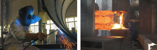 施工現(xiàn)場焊花飛舞、壓機(jī)轟鳴