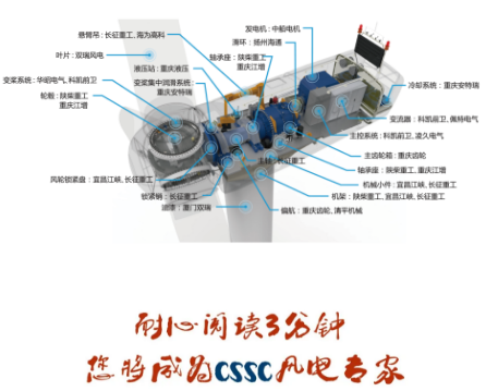 中國船舶集團擁有國內實力強勁的自主研發與生產體系,具備強大的機、電、液、控一體化裝備制造服務保障能力,形成了從葉片、齒輪箱、發電機、控制系統到機座、機架、塔筒、輪轂等全系列制造能力,從資源開發、零部件制造、整機研發、工程安裝、運維服務等全產業鏈保障能力,是我國唯一具備較完整風電裝備研制生產服務保障體系的專業化集團。