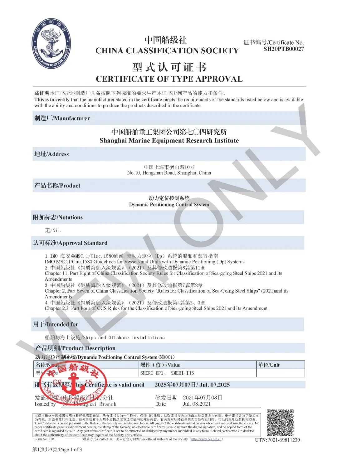 8月5日,中國船舶集團七〇四所動力定位控制系統(DP系統)獲中國船級社(CCS)授予的國產化型式認可證書。該所成為國內第一家滿足CCS2021年最新《鋼質海船入級規范》要求的動力定位控制設備及系統供應商。