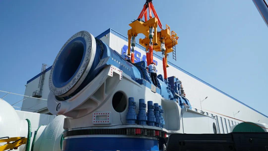 我國風輪直徑最大、全球單位千瓦掃風面積最高10兆瓦級海上風電機組下線