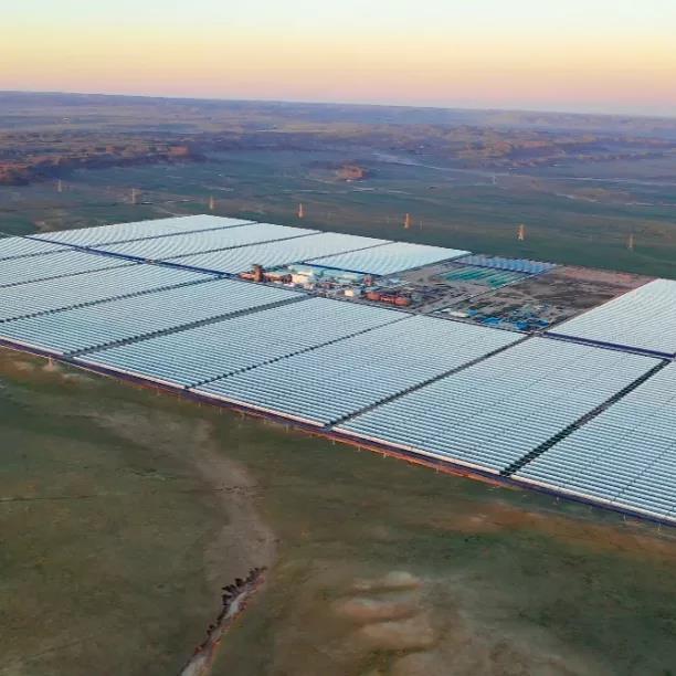 烏拉特項目建有352套集熱裝置,均勻分布在5平方公里草原上。在白天光照充足的情況下,烏拉特項目每小時可發(fā)電約10萬度,24小時可發(fā)電200萬度以上。