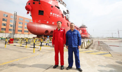 △每艘船下水時,姚勝華都要去現(xiàn)場看一看(右)