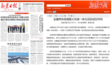 近日,中國(guó)船舶集團(tuán)旗下中船科技子公司中船風(fēng)電和哈密國(guó)投聯(lián)合開發(fā)的新疆哈密百萬千瓦風(fēng)儲(chǔ)一體化項(xiàng)目首臺(tái)風(fēng)機(jī)成功并網(wǎng)發(fā)電,央視《新聞聯(lián)播》、新華網(wǎng)和《新疆日?qǐng)?bào)》等紛紛關(guān)注報(bào)道。