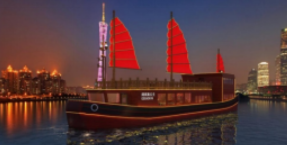 ????160客位純電動客船“闊闊真公主號”總長36米,型寬8米,型深3米。該船是仿七百多年前元朝闊闊真公主遠(yuǎn)嫁波斯時乘坐的古船建造而成,有“福船送福”的寓意。建造后將行走于珠江,夜游展示亞洲文化交流的傳奇。