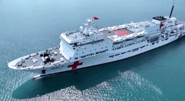 “絲路方舟”號醫院船羅吉星介紹:“作為一艘醫院船,它具備靈活的機動能力,能夠在災害發生第一時間迅速抵達災害地區,提供醫療援助服務,還具備多種換乘能力和轉移手段,在不具備靠泊條件的災害地區可以通過直升機和救護艇,將醫護人員和醫療物資轉運上岸,或者通過同樣的方式將我們傷病員轉運至醫院船進行醫療救治。