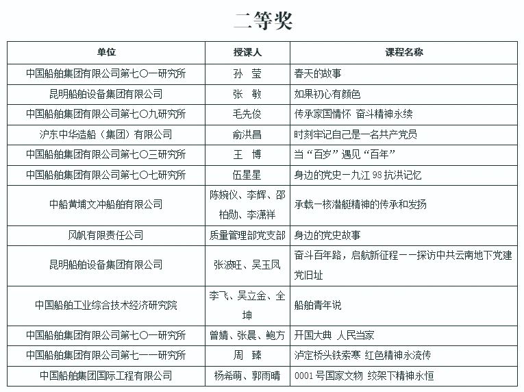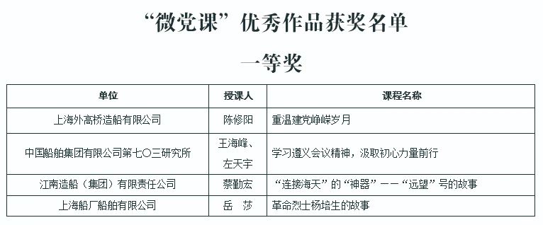 除一等獎的“微黨課”作品,其他獲評優秀的“微黨課”和專題黨課可以登錄集團公司黨?!爸写琫學”平臺首頁“中國船舶集團有限公司黨課評選優秀作品展示”進行觀看。