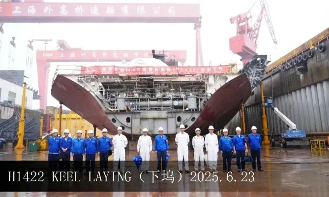 在該船的船建造過程中,建造團隊齊心協力,與船東船檢密切合作,合理調配生產資源,統籌物流,確保分段按計劃及時供應,順利完成了總段塞軸裝槳及泵艙完整性目標。目前,該船關鍵路徑分段已全部配齊,整船分段結構全部完工,為下塢后的快速搭載創造了有利條件。